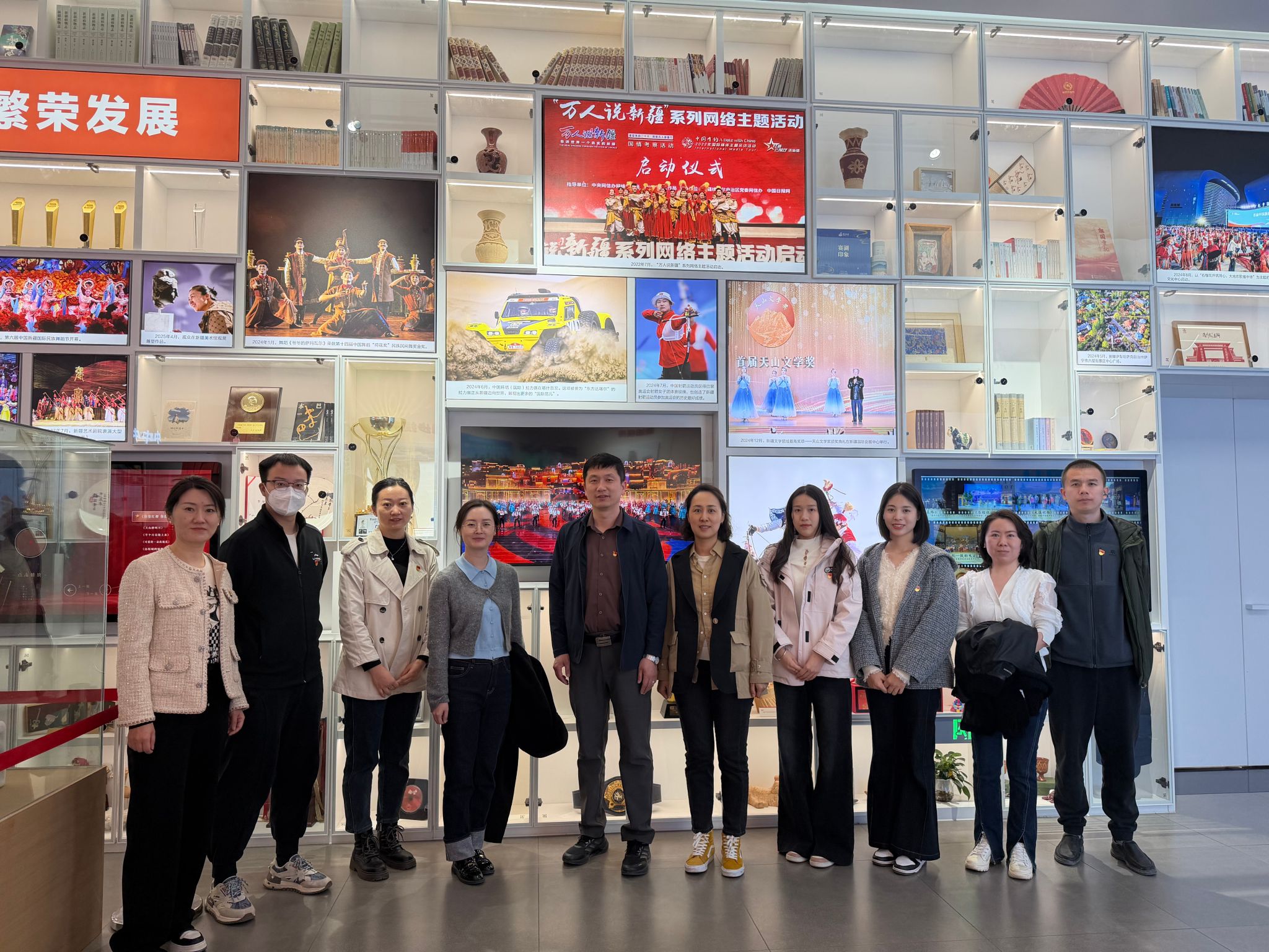 活动中,全体党员怀着崇敬的心情参观了“万方乐奏换新天”“潮涌天山展宏图”“美丽新疆铸辉煌”三大篇章,通过1600余幅历史图片、实物模型与多媒体场景,全景式回顾了在党的领导下,新疆从百废待兴到繁荣发展的沧桑巨变。大家认真驻足观看、仔细聆听讲解,深刻感受新疆在经济发展、民生改善、文化繁荣、民族团结等方面取得的历史性成就,在今昔对比中坚定了扎根新疆、建设新疆的信心。